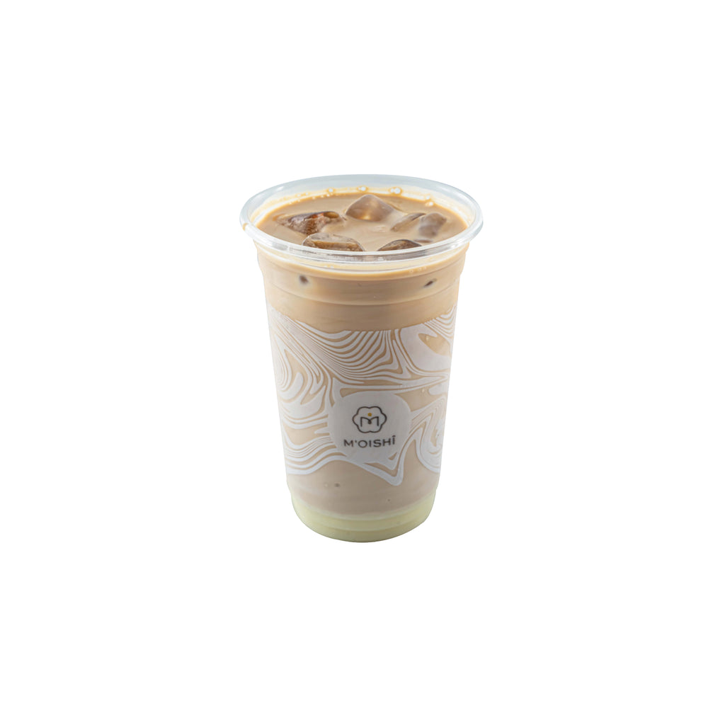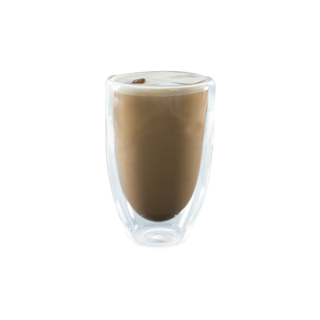 Milk, condensed milk, double shot espresso, vanilla syrup and ice.